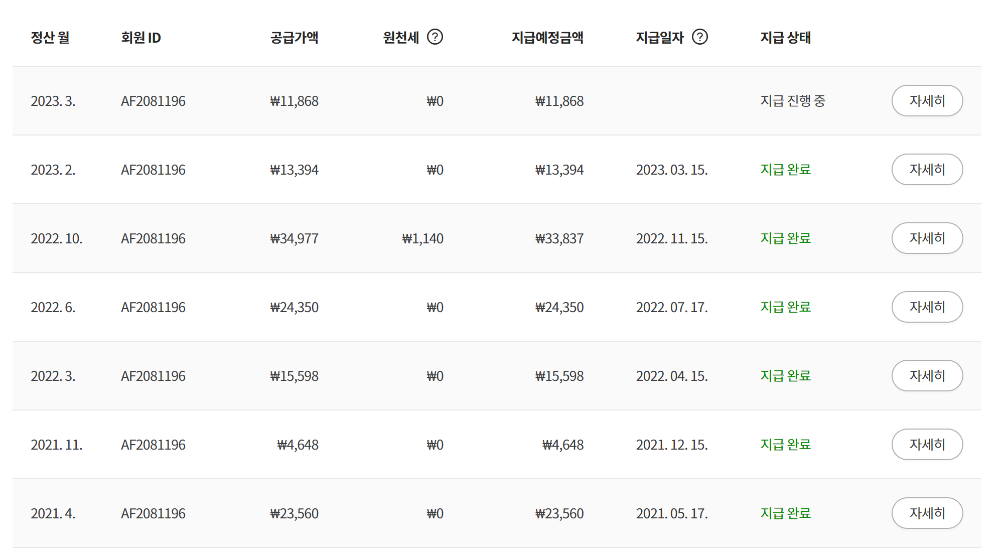 아래의 그동안의 정산내역을 보면 알겠지만 수익이 크지 않습니다.
